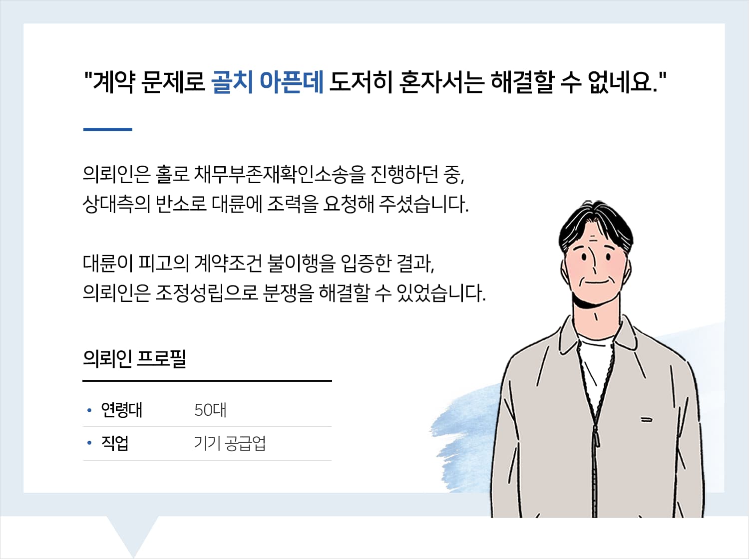 계약 조건을 이행하지 않는 거래처를 상대로 의뢰인은 채무부존재확인소송을 진행하였습니다.